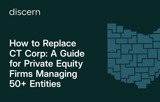 For PE firms managing 100+ entities across multiple funds, Discern's per-entity billing with segregated fund support eliminates invoice reconciliation across fund vehicles. Customers with 200+ state registrations spend approximately 15 to 30 minutes annually on compliance, and change-of-agent filings are free.